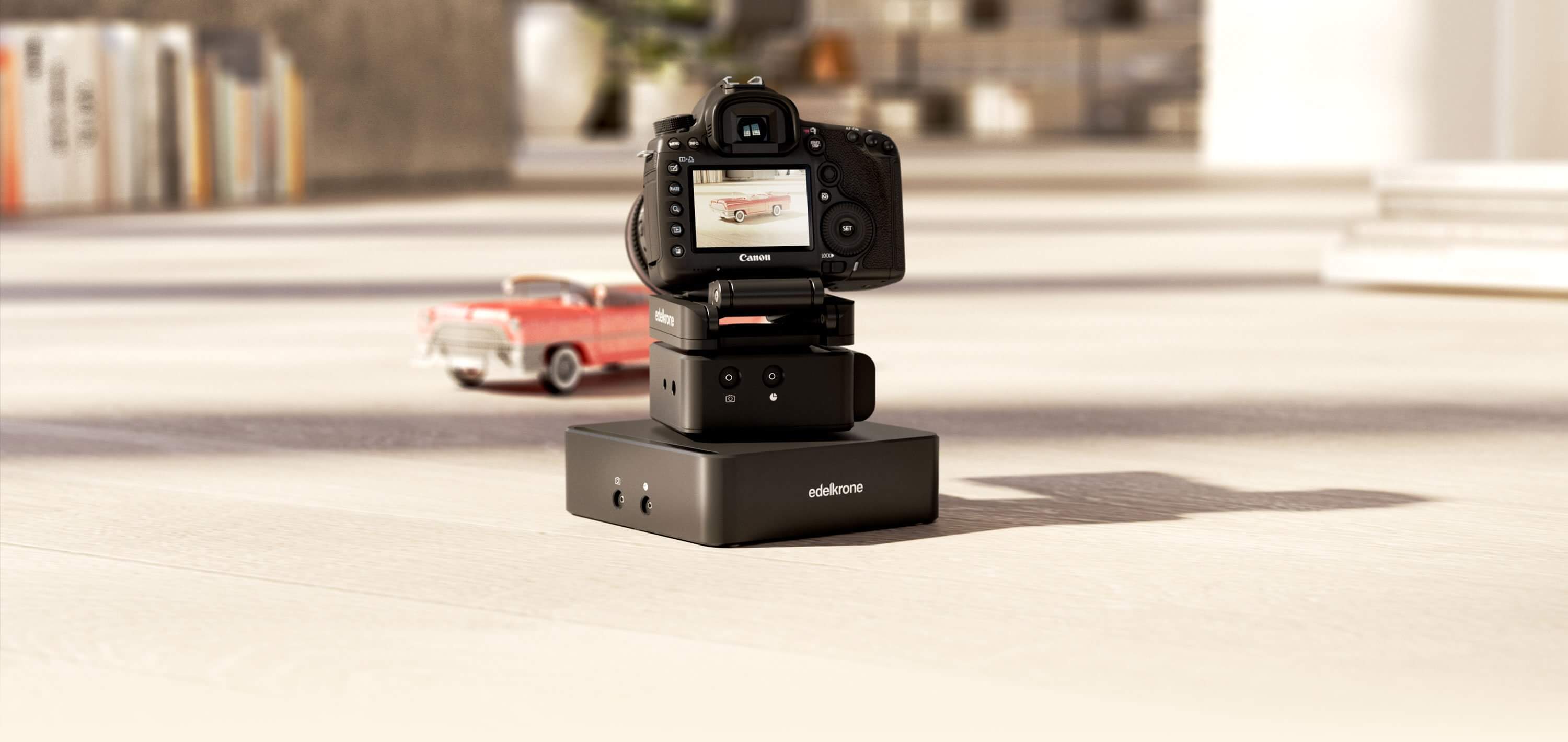 Ultra-portabler, motorisierter Tischwagen für lineare oder gekrümmte Kamerabewegungen auf flachen Oberflächen + drahtlose Konnektivität mit motorisierten Köpfen von Edelkrone.
